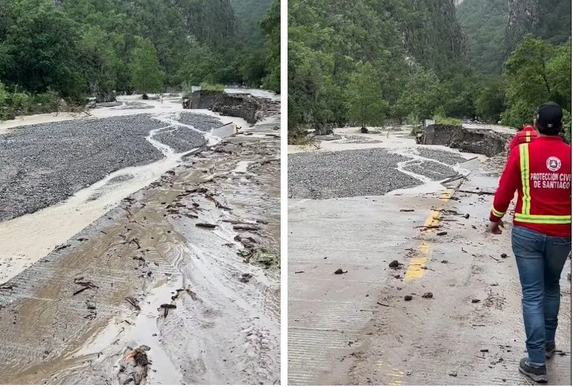 Elementos de Protección Civil de Santiago realizaron un recorrido por la parte afectada y constataron los severos daños en el lugar.