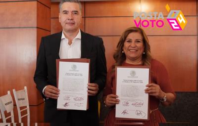Los abanderados de la coalición “Sigamos Haciendo Historia” recibieron el documento por parte del consejo local del INE.
