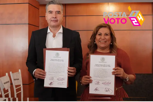 MONTERREY, Nuevo León.- Waldo Fernández y Judith Díaz, los abanderados de la coalición “Sigamos Haciendo Historia” recibieron la constancia que los acredita como los senadores electos para representar a Nuevo León.