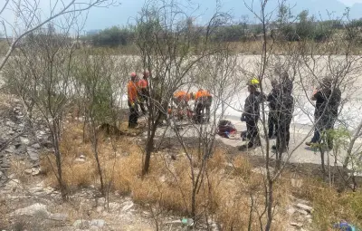 La Unidad de Protección Civil Nuevo León informó que la persona fue atendida por PC Santa Catarina y se encontraba fuera del arroyo con lesiones leves, sin necesidad de traslado a un centro médico.