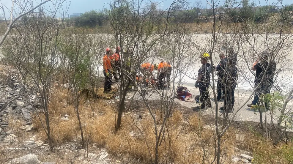 Rescatan a hombre que cae en arroyo en Santa Catarina
