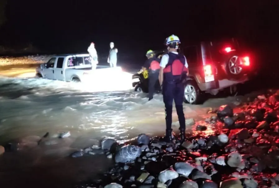 Esto ocurrió después de haberse metido al agua y la fuerte corriente los atrapara con sus vehículos tipo Jeep y los conocidos razer.