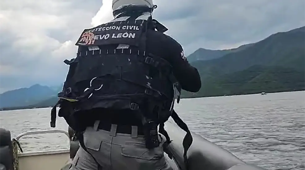 SANTIAGO, Nuevo León.- Elementos de Protección Civil de Nuevo León se movilizaron a la Presa La Boca, en el municipio de Santiago, tras recibir un reporte de una lancha varada.