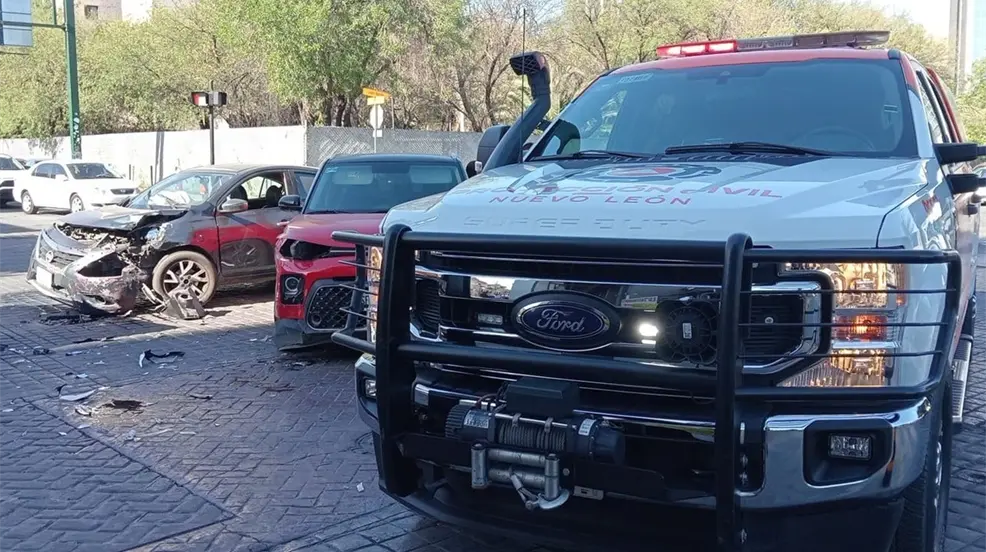 MONTERREY, Nuevo León.- Elementos de Protección Civil Nuevo León se encuentran en el Centro de Monterrey, atendiendo el reporte de accidente vial entre dos vehículos.