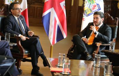 NUEVO LEÓN.- El gobernador del estado de Nuevo León, Samuel García Sepúlveda, se reunió hoy en el Palacio de Gobierno con el Embajador de Reino Unido en México, con el objetivo de continuar impulsando proyectos de colaboración entre esta nación y la entidad.