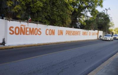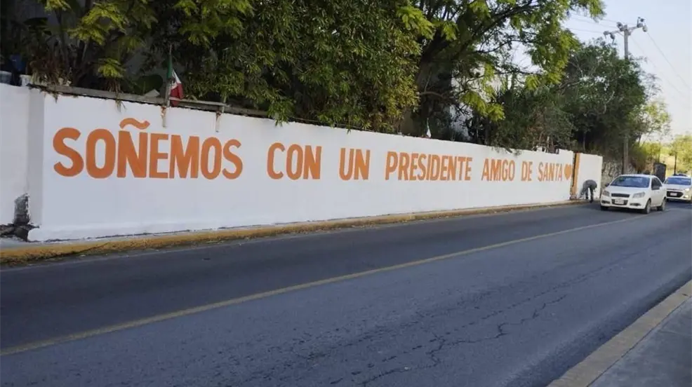 Una muestra de este apoyo se puede encontrar en la Avenida Miguel Alemán, casi llegando a la Huasteca, donde una barda destaca con la frase 'Soñemos con un Presidente amigo de Santa'.