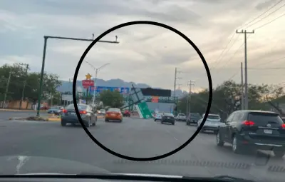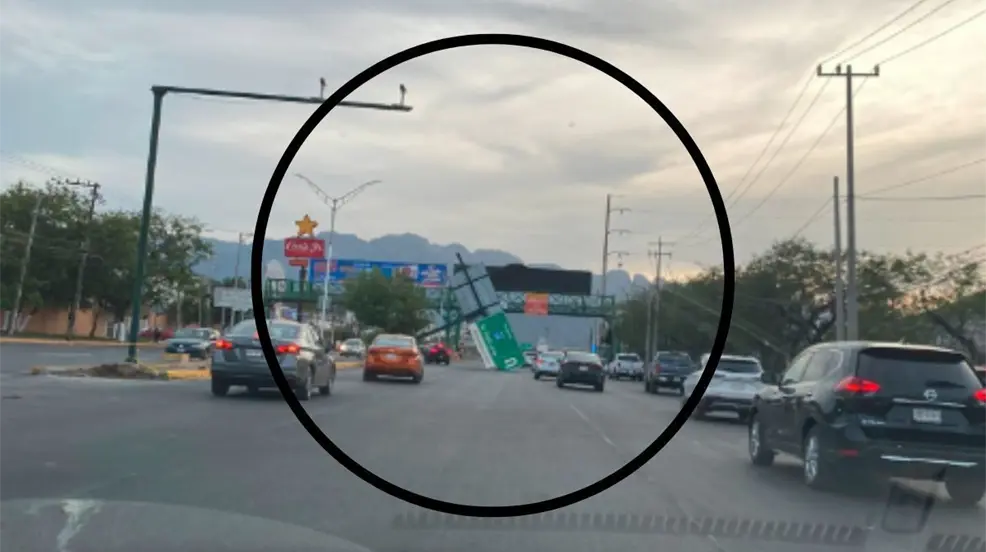 Obstruye señalética carriles de la avenida Pablo Livas en el municipio de Guadalupe, se habría caído luego de las ráfagas de viento registradas durante la tarde del viernes.