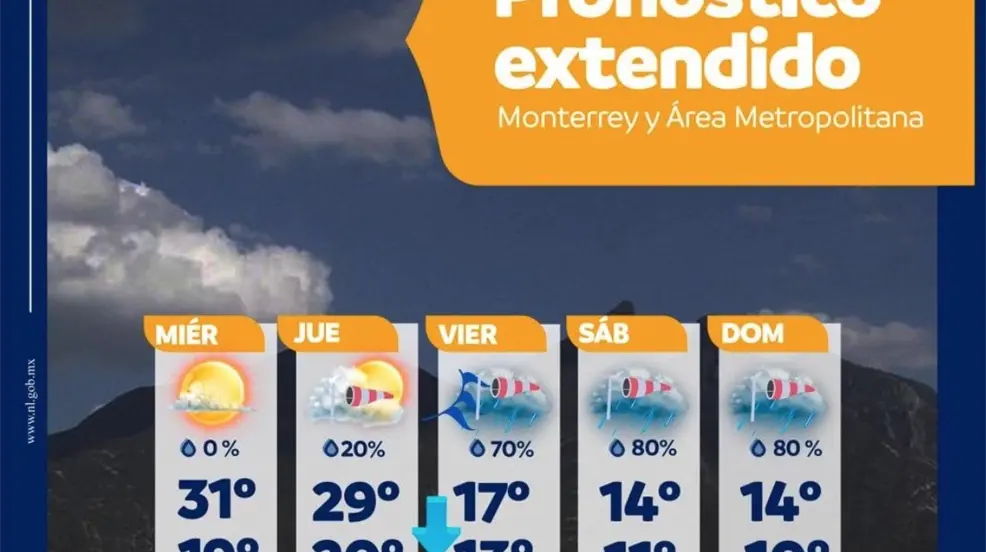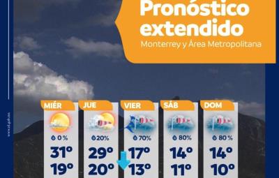 MONTERREY, Nuevo León.- El frente frío número 9 de la temporada provocará para el área metropolitana un descenso marcado en las temperaturas así como fuertes lluvias para el próximo fin de semana.
