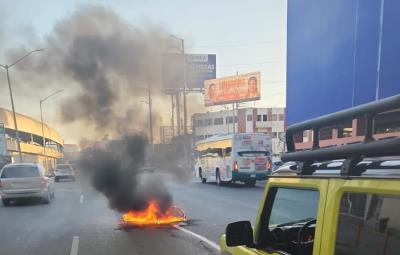 Se incendia moto tras choque en Centro de Monterrey