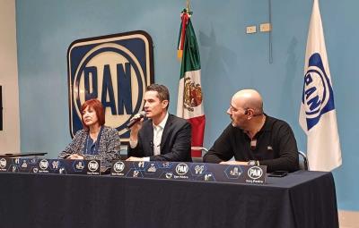 El aspirante a la alcaldía ofreció una rueda de prensa a los medios de comunicación acompañado de Karina Torres, Secretaria General del PAN.