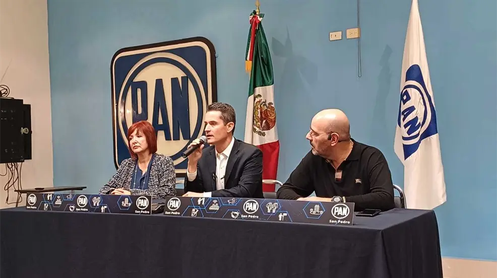 El aspirante a la alcaldía ofreció una rueda de prensa a los medios de comunicación acompañado de Karina Torres, Secretaria General del PAN; y Marcial Herrera, ex contendiente del PAN por la alcaldía de San Pedro, quien se retiró de la contienda para apoyar a Margáin.