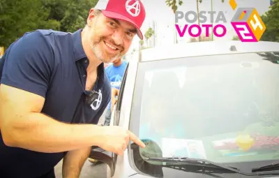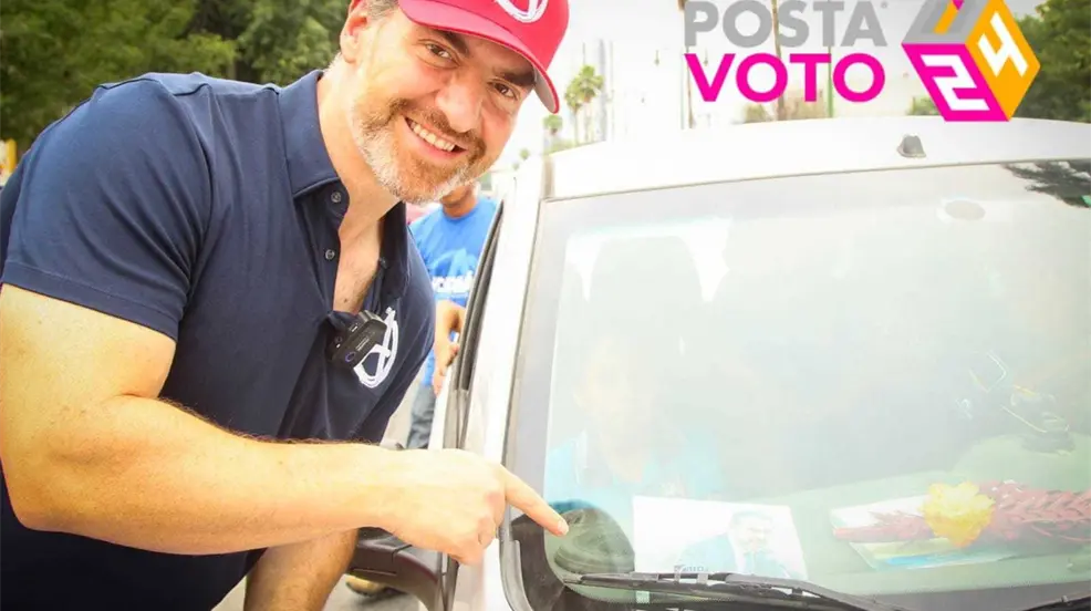Previo a su recorrido por la zona norponiente, el candidato de la coalición PRI, PAN y PRD, Adrián de la Garza, estuvo en el crucero de Madero y Venustiano Carranza, realizando la pega de calcas de su campaña, rumbo a las próximas elecciones del 2 de junio.