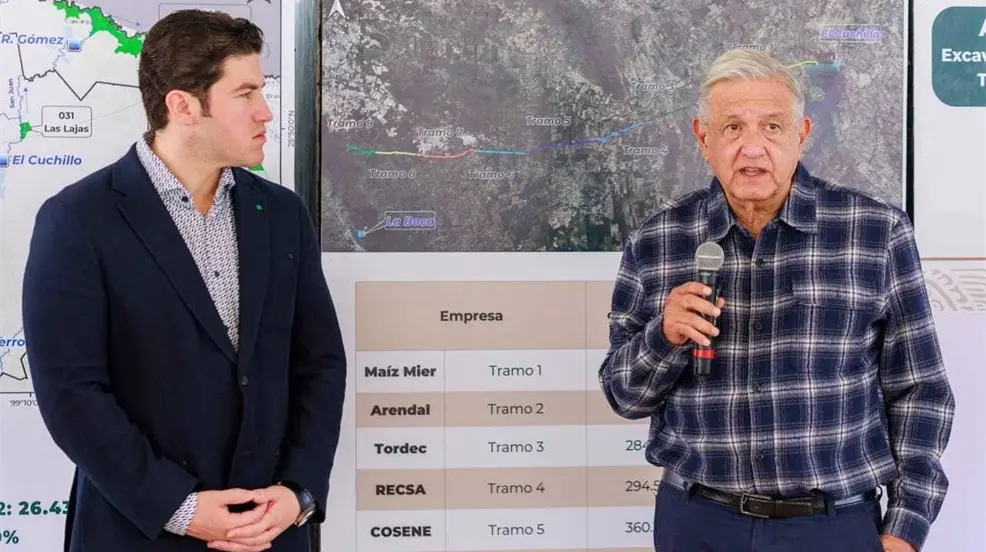 Supervisan Samuel y AMLO avances del acueducto El Cuchillo II