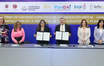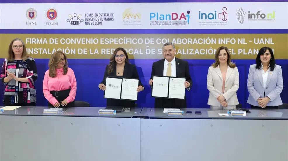 SAN NICOLÁS DE LOS GARZA, Nuevo León.- La Universidad Autónoma de Nuevo León (UANL) y el Instituto Estatal de Transparencia, Acceso a la Información y Protección de Datos Personales (INFO NL) han firmado un convenio de colaboración para implementar el Plan Nacional de Socialización del Derecho de Acceso a la Información en Nuevo León. Este acuerdo busca capacitar al personal y estudiantes de la Facultad de Trabajo Social y Derechos Humanos (FTSYHD) con el fin de participar en las actividades para la implementación del Plan DAI en la región.
