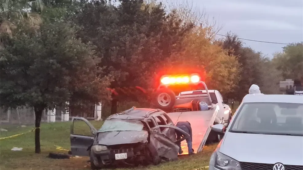 Un muerto y un herido fue el saldo que dejó la volcadura de un auto que presuntamente iba a exceso de velocidad en el municipio de Montemorelos.