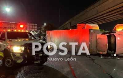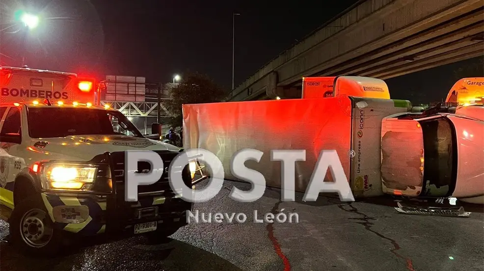 El conductor de un tráiler perdió el control de su unidad al viajar a exceso de velocidad, lo que le llevó a volcar en San Nicolás de los Garza.