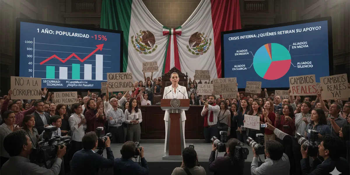 Claudia Sheinbaum pierde respaldo en solo un año: seguridad, economía y desgaste político.
