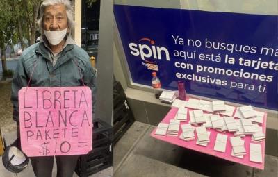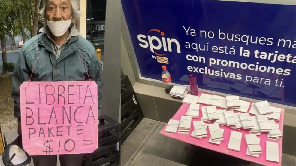 Un abuelito de 78 años vende libretitas a 10 pesos para salir adelante y apoyar a su esposa de 74 que está enferma de la columna en el municipio de Guadalupe.
