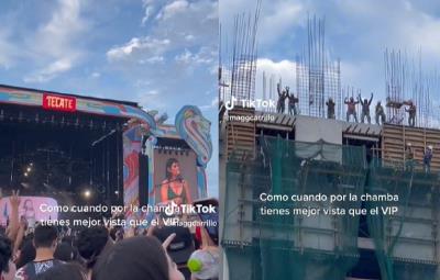 MONTERREY, Nuevo León.- Un grupo de albañiles que trabajan en un edificio en construcción en la zona del Parque Fundidora de Monterrey no desaprovecharon la oportunidad de disfrutar del festival musical Tecate Pa'l Norte.