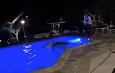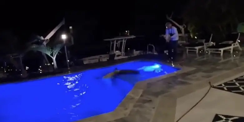 A través de un video publicado por dicha empresa especializada, se pudo apreciar como Hardwick amarró al reptil con una soga, pero este se defendió, dando vueltas en la piscina y creando grandes salpicaduras que hicieron que el piso alrededor se volviera peligrosamente resbaladizo para los cazadores.