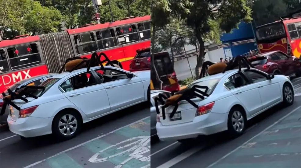 CIUDAD DE MÉXICO.— Un auto con arañas gigantes ha desatado furor en las calles de la CDMX y en TikTok, justo a tiempo para la temporada de Halloween.