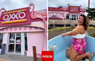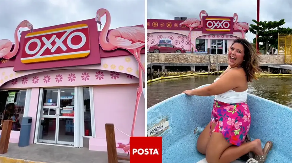 La tienda Oxxo en Progreso, Yucatán, es famosa por su exterior rosa y figuras de flamencos, situada estratégicamente para ofrecer vistas impresionantes del mar.