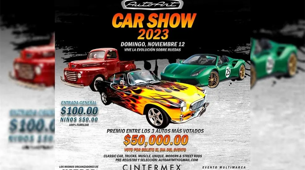 MONTERREY, Nuevo León.- El AUTOART Car Show 2023 un evento de exhibición de autos multimarca, se llevará a cabo el domingo 12 de noviembre en la Sala H de Cintermex, en la ciudad de Monterrey, México.