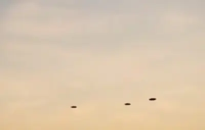 En el clip de poco más de un minuto que ya circula en redes sociales, se observa a tres platillos voladores volando a lo lejos en el horizonte, cuando poco a poco comienzan a acercarse haciendo un extraño ruido al moverse.Lo que no tiene precedentes en este tipo de vídeo es que los ovnis son perseguidos por dos aviones militares a corta distancia.