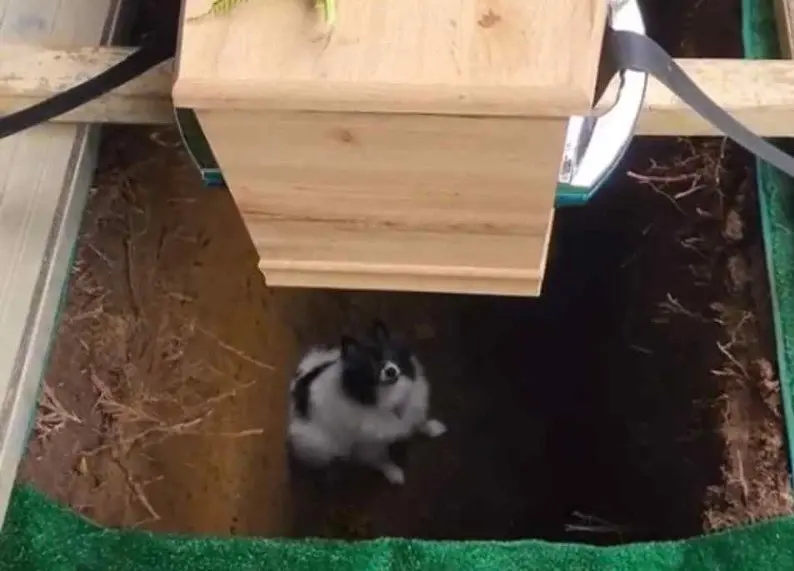 Tal como se observa en un video que compartió el medio Fox 5 NY, un perrito de color blanco con manchas negras y collar aparece en el fondo de la fosa de la tumba, mientras que a metros de altura se encuentran todas las personas que asistían al funeral y la caja en la que está la persona fallecida, esperando a ser enterrada.