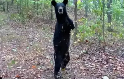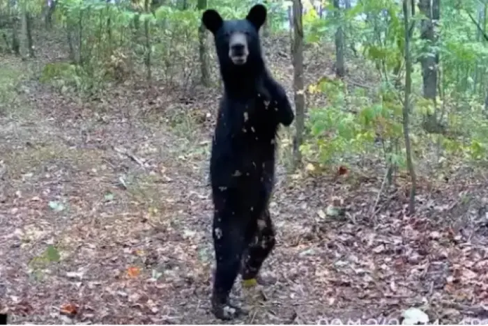 Un hombre compartió en Instagram las imágenes de un oso de dos patas que captó con su cámara trampa y señaló que cree que es un macho de aproximadamente 8 años.