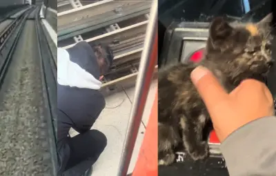 Conductor del Metro de Ciudad de México rescata a gatito en peligro. (VIDEO)