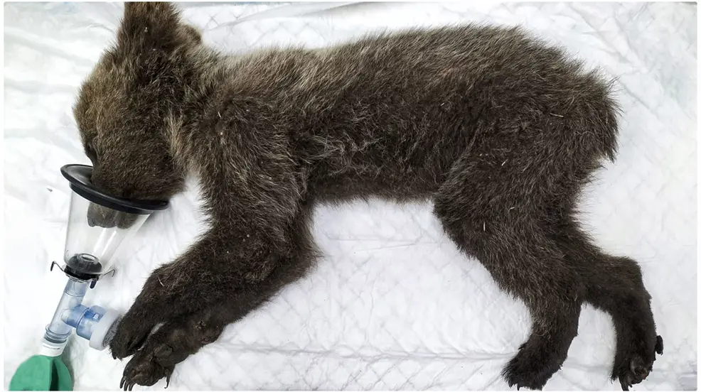 Conmovedora historia: osezno es rescatado con patas quemadas en España