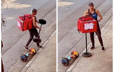 Creatividad en acción: Joven se "convierte" en vehículo y hace entregas (VIDEO)
