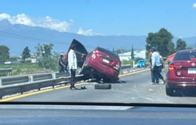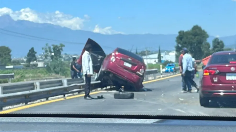 ¡De milagro! Conductor se salva de caer de puente en Tlaxcala