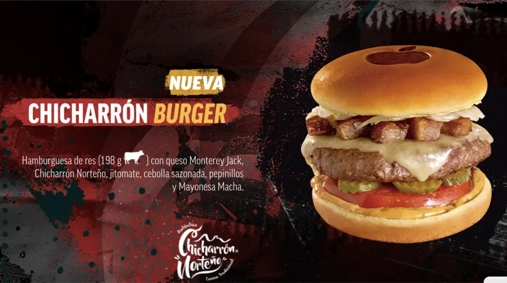Las nuevas hamburguesas de Applebee's México son: la Southwest Burger, una Hamburguesa de pechuga de pollo empanizada con pimientos, quesos y salsa Southwest Alfredo; la Chicharrón Burger, una Hamburguesa de res con queso Monterey Jack, Chicharrón Norteño, jitomate, cebolla sazonada, pepinillos y Mayonesa Macha; y la Choriqueso Burger, una Hamburguesa de res con chorizo, jitomate, cebolla morada, pepinillos, chile jalapeño y Mayonesa Chimichurri, gratinada con choriqueso.