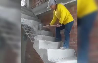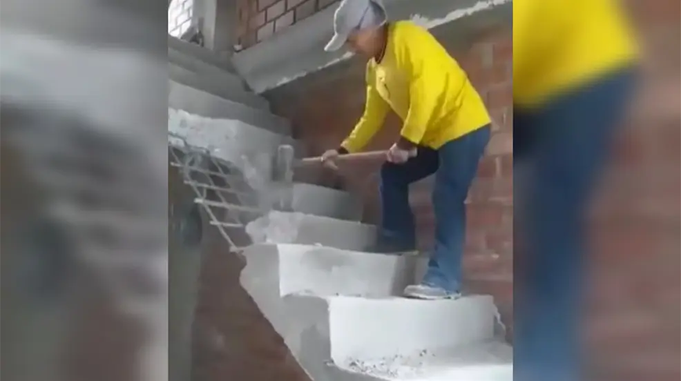 El video compartido por el usuario de TikTok alexsolis041 se puede observar cómo el albañil enfurecido da de golpes con un mazo a la escalera de concreto hasta destruir cada uno de los escalones; se puede escuchar a una persona que le pide que no lo haga.
