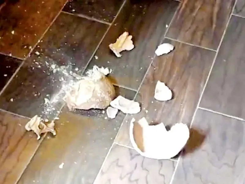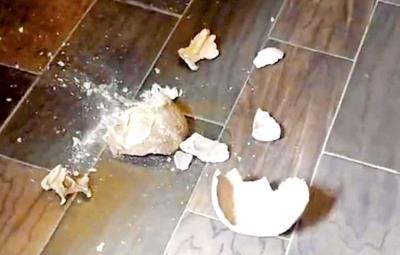 Según testigos, un reportero o alguien con una mochila tiró el cráneo al suelo, y al menos la mitad de éste se hizo polvo, la parte restante, que presenta daños pero quedó menos afectada, tiene sólo algunas fisuras.