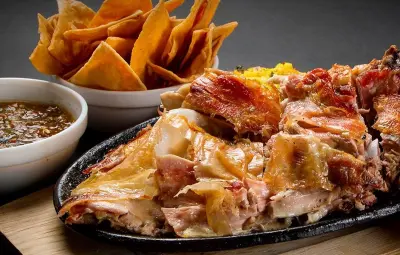 - Carnes Especialidades: Mixto (cabrito y carne), tablitas de filete, cabrería, alambres de filete, filete abierto, filete encebollado y filete gratinado.