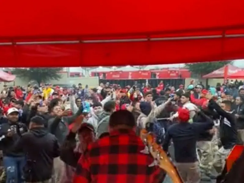 El festejo fue para los trabajadores de la empresa en el municipio Monterrey, Nuevo León donde los empleados están bailando juntos en los stands de la empresa.