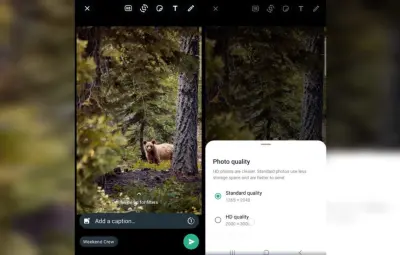 Al enviar una fotografía en WhatsApp, aparecerá una nueva opción marcada como HD en la parte superior de la imagen. Al pulsarla, se podrá elegir la calidad con la que se enviará la imagen al destinatario o grupo.