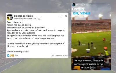 La denuncia de Martínez, rápidamente se volvió viral, generando un acalorado debate entre los usuarios, incluso en varias páginas de Facebook ya circula el nombre del presunto aficionado que se fue sin pagar pues incluso en sus redes sociales presumió su hazaña. Edson Vega Pérez, como fue identificado, escribió: 'Me regalaron como 15 vasos de cerveza jaja me fui al min 80 y ya no pagué jjajaja'.