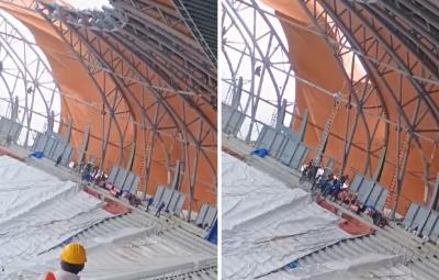 Un video muestra el momento en el que un trabajador queda colgado por accidente durante las obras de remodelación del nuevo Estadio GNP en la Ciudad de México.