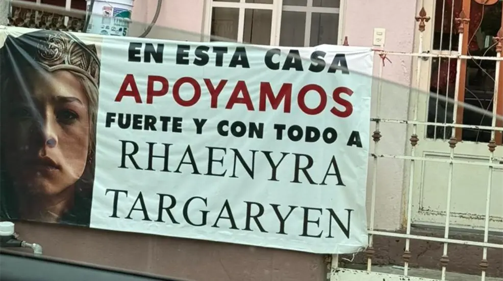 Esta familia ha demostrado su pasión y apoyo incondicional por la serie y, en particular, por el personaje de Rhaenyra Targaryen, al colocar una lona en su vivienda con una leyenda de apoyo a esta figura icónica.