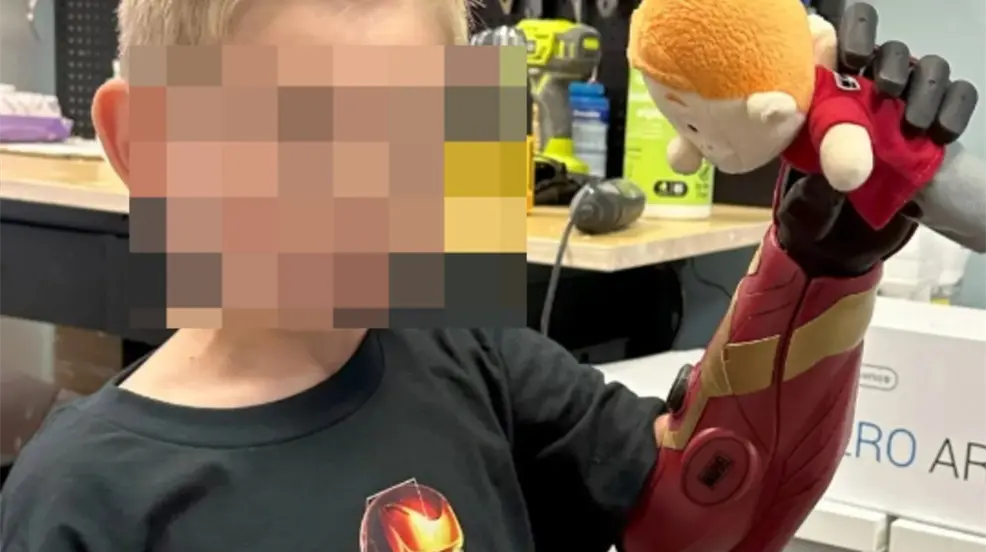 ¡Iron Kid! Niño de 5 años utiliza brazo biónico