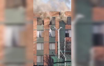 Sin pensarlo dos veces, se asomó por la ventana y se percató de que el apartamento superior estaba en llamas.