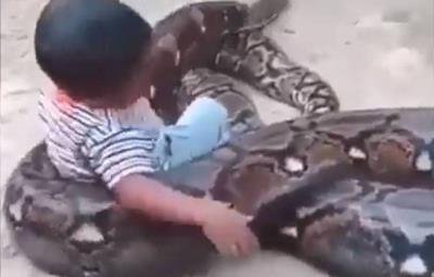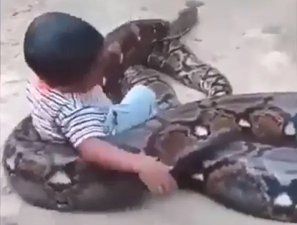 El video, compartido en X y Facebook muestra a un niño manipulando a un pitón sin que el animal parezca incomodarse.