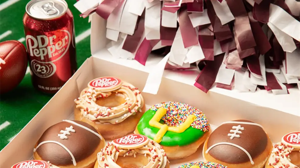 La dona de Krispy Kreme sabor a Dr. Pepper fue anunciada mediante las cuentas oficiales de la compañía en los Estados Unidos, haciendo referencia a que es un homenaje especial al inicio de la temporada de la NFL, el fútbol americano, que está a punto de ver como inician los duelos en los estadios.