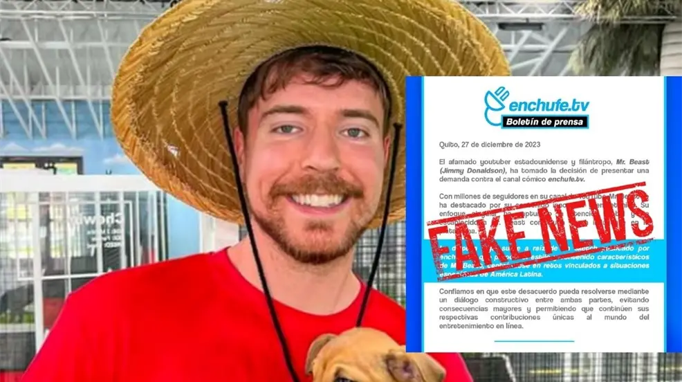 QUITO, Ecuador.- No fue real sino “una broma inofensiva realizada en el espíritu del Día de los Inocentes”, publicó el canal ecuatoriano de comedia Enchufe.Tv respecto a la supuesta demanda que el youtuber Jimmy Donaldson, conocido como MrBeast, hizo en su contra.