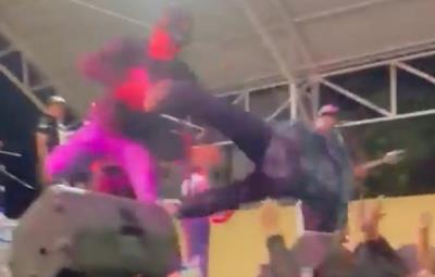 Un hombre de baja estatura fue lanzada desde un escenario en pleno concierto del grupo “Invierno Musical” en Nayarit.