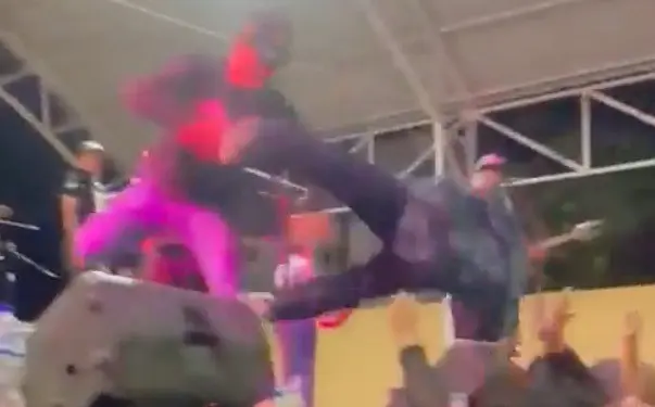 En un momento dado, un agresivo hombre, sin más, se subió al escenario y tomó a la víctima por la parte trasera y lo lanzó de la tarima cayendo desde una altura de casi dos metros.Al respecto, los representantes de Invierno Musical, señalaron que esta persona agresiva no pertenece a su staff, por lo que las autoridades ya investigan el hecho.